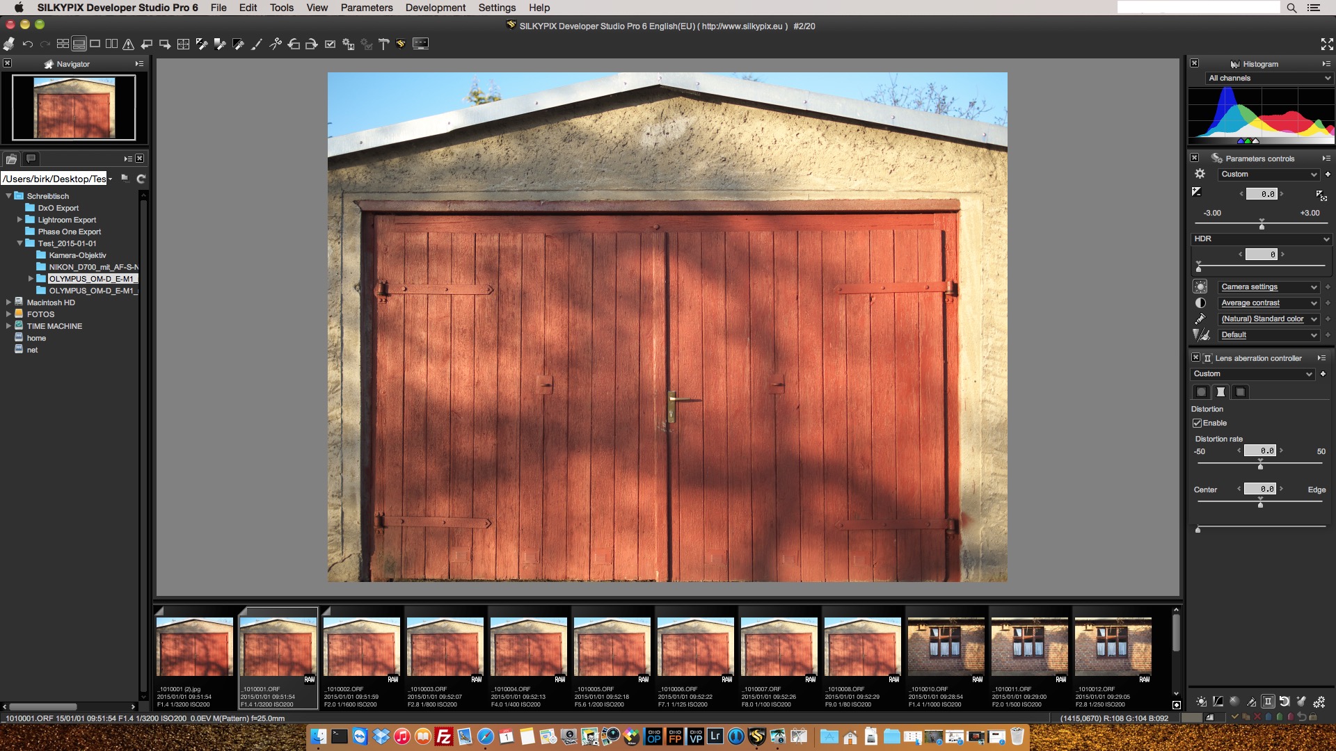 Auch kostenlos kann sehr gut sein, wenn es um grundlegende Funktionen, wie das Herausrechnen von Objektivverzeichnungen geht. In diesem Test hat keiner der Testkandidaten beim Korrigieren der tonnenförmigen Verzeichnungen des Objektivs LEICA DG SUMMILUX 25 mm / F1.4 gepatzt, auch nicht der kostenlose RAW Konverter Olympus Viewer 3. Es hat sich aber wieder einmal gezeigt, dass der teuerste RAW Konverter im Test, nämlich Phase One Capture One Pro 8.1, seinen Job am effizientesten erledigt hat. Fotos im RAW Format laden – und fertig!